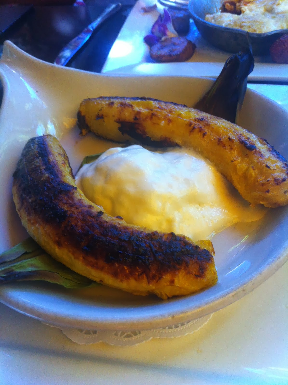 Order the Maduros con Queso and the Salchipapas (grilled plantains with burrata/sausage and potatos).
